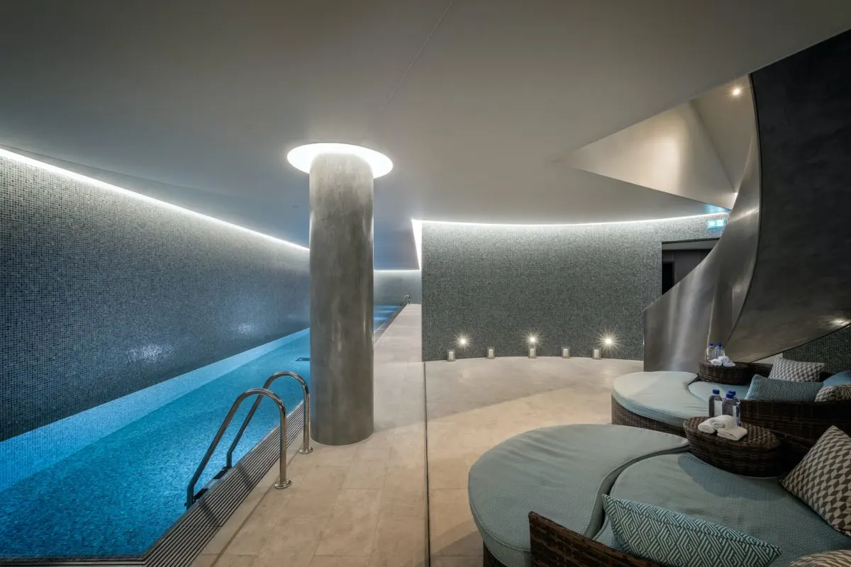 The Mansion has been designed to offer it residents the finest amenities – On arrival, residents are greeted by a dramatic travertine-lined double height lobby with 24/7 Concierge and an elegant Residents’ Lounge overlooking an intimate sunken garden. A curved staircase sweeps down from the lobby level to reveal the 25m private pool, the largest in Marylebone, as well as a state-of-the-art fitness studio, private treatment room, sauna and steam room.